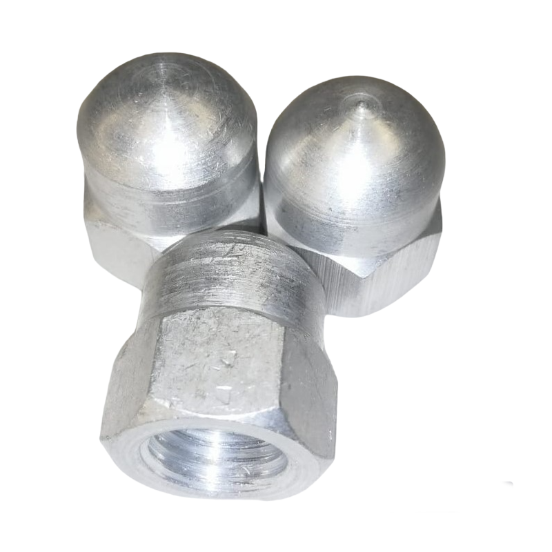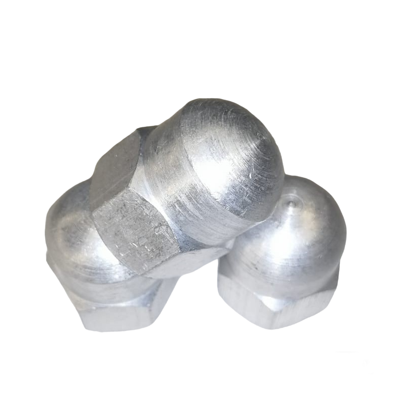 Porca calota alumínio , possui extremidade em formula de cupula para dar melhor acabamento estético.