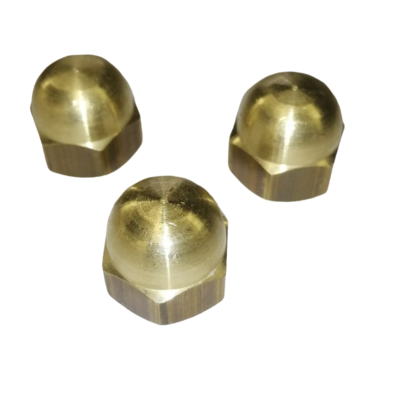 Porca calota latão, possui extremidade em fórmula de cúpula para dar melhor acabamento estético.